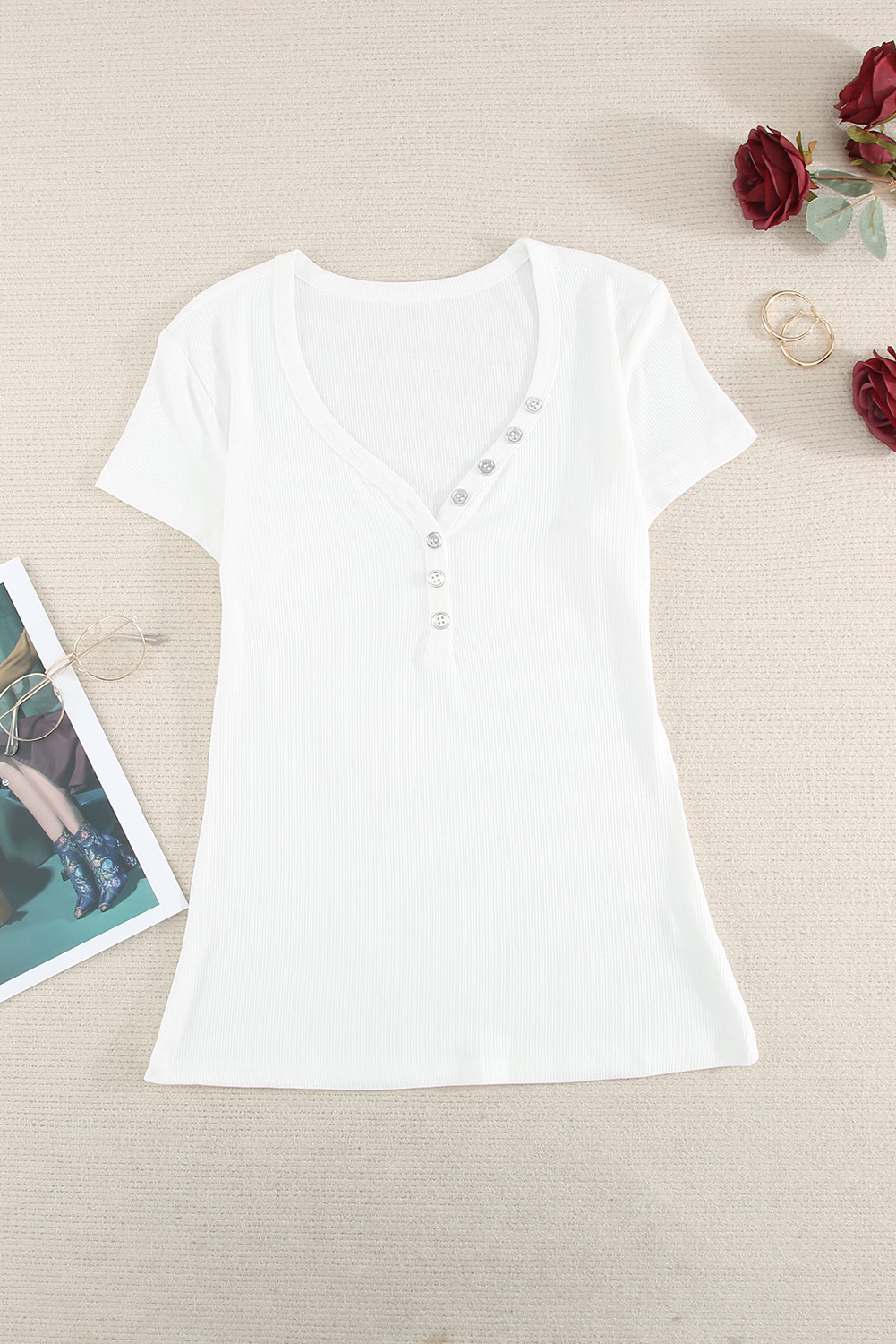 Crafted from a soft, breathable fabric, this timeless top features short sleeves and solid color - perfect for a casual day. The lightweight design ensures comfortable all day wear, making this the ideal choice for a relaxed yet stylish look.